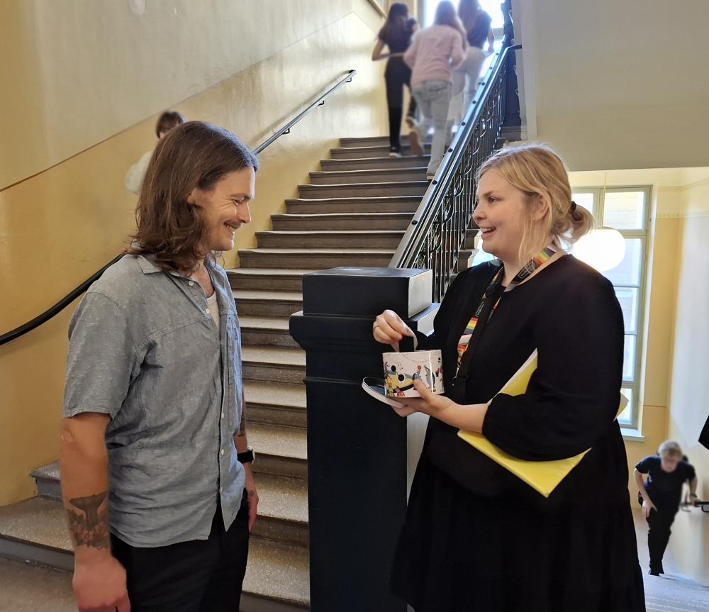 Men dagens samtal handlar inte om mobiler, utan om något betydligt allvarligare: hur skolorna kan stödja de elever som begår brott som rån eller narkotikabrott – och hur personalen ska lära sig känna igen problemen i tid. Vid kaffebordet sitter, förutom Lindqvist, också Tomas Luoto från Stationens Barn, en barnskyddsorganisation som arbetar förebyggande med ungdomar.
