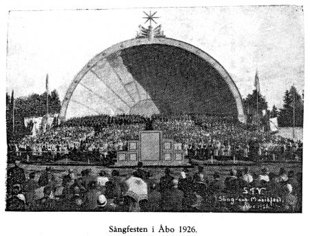 Joel Rundt beskriver SFV:s sångfest i Åbo år 1926. Bilder och en redogörelse över programmet under sångfesten ingår.